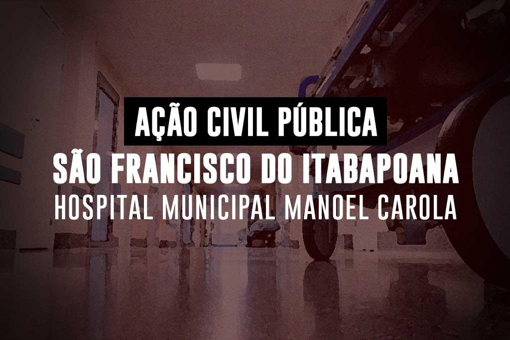 O Ministério Público do Estado do Rio de Janeiro (MPRJ), por meio da 3ª Promotoria de Justiça de Tutela Coletiva de Campos dos Goytacazes, ajuizou Ação Civil Pública para que a Prefeitura de São Francisco do Itabapoana corrija diversas irregularidades existentes no Hospital Municipal Manoel Carola, entre elas a falta de medicamentos, insumos e de equipamentos necessários ao funcionamento da unidade hospitalar.