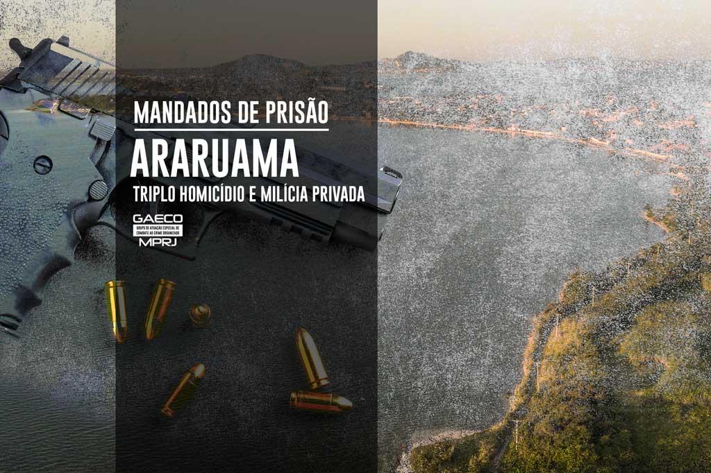 O Ministério Público do Estado do Rio de Janeiro (MPRJ), por meio do Grupo de Atuação Especial no Combate ao Crime Organizado (GAECO/MPRJ), em conjunto a Polícia Federal em Macaé (DPF/MCE/RJ), deflagrou, na manhã desta quinta-feira (02/09), operação para cumprimento de três mandados de prisão expedidos pelo Juízo da Vara Criminal de Araruama em desfavor de milicianos responsáveis por um triplo homicídio qualificado, ocorrido no Campo do Utá, bairro Fazendinha, em Araruama. Adison Menezes dos Santos (vulgo 'Magrão'), ex-policial militar, e Paulo Diego da Silva ('Dendê' ou 'Diego') já se encontravam presos e os mandados de prisão foram cumpridos no estabelecimento prisional. Outro acusado, o ex-policial militar Marcos André Rodrigues Machado ('Marcão' ou 'Machado'), se encontrava foragido há cerca de um ano e foi preso, nessa manhã, pela Polícia Federal, quando chegava numa pousada na praia do Foguete, em Cabo Frio.