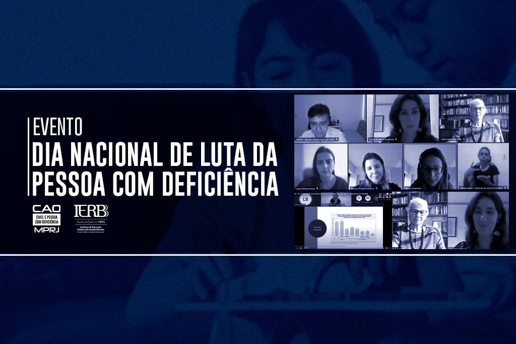 O Ministério Público do Estado do Rio de Janeiro (MPRJ), por meio do Instituto de Educação Roberto Bernardes Barroso (IERBB/MPRJ), da Comissão Permanente e Multidisciplinar de Acessibilidade do MPRJ (CPMA) e do Centro de Apoio às Promotorias de Justiça das Promotorias Cíveis e de Tutela Coletiva da Pessoa com Deficiência (CAO Cível PDef/MPRJ) realizou, nesta terça-feira (14/09), evento em homenagem ao Dia Nacional de Luta da Pessoa com Deficiência - 'Capacitismo no Ambiente de Trabalho: Combatendo o Preconceito à Pessoa com Deficiência'. O encontro foi realizado em ambiente virtual e transmitido pela página do IERBB/MPRJ no Youtube.
