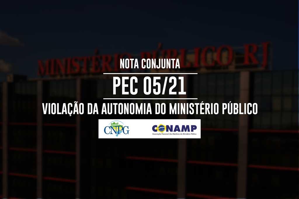 A Associação Nacional dos Membros do Ministério Público (CONAMP) e o Conselho Nacional de Procuradores-Gerais dos Ministérios Públicos dos Estados e da União (CNPG) emitiram nota conjunta dirigida aos deputados federais posicionando-se contra a votação e aprovação da Proposta de Emenda à Constituição nº 5 de 2021 (PEC 5/2021) em tramitação no Congresso Nacional nos termos atuais.