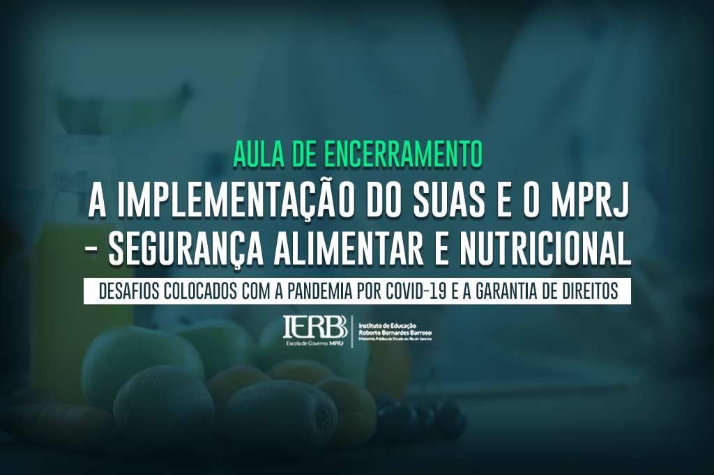 O Ministério Público do Estado do Rio de Janeiro (MPRJ), por meio do Centro de Apoio Operacional das Promotorias de Justiça de Cidadania (CAO Cidadania/MPRJ), com apoio do Instituto de Educação Roberto Bernardes Barroso (IERBB/MPRJ), realizou, nesta terça-feira (09/11), com transmissão online, a última aula do curso de capacitação “A Implementação do SUAS e o MPRJ - Segurança Alimentar e Nutricional: Desafios colocados com a pandemia por COVID-19 e a garantia de direitos”.