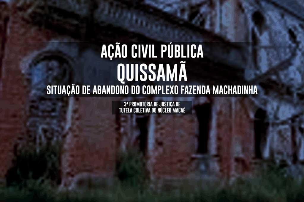 O Ministério Público do Estado do Rio de Janeiro (MPRJ), por meio da 3ª Promotoria de Justiça de Tutela Coletiva do Núcleo Macaé, ajuizou ação civil pública para que o Município de Quissamã tire da situação de abandono o Complexo Fazenda Machadinha, local com grande valor histórico e tombado pelo Instituto Estadual do Patrimônio Cultural (INEPAC).  Construída no século XIX, a fazenda de cana-de-açúcar pertenceu a Manuel Carneiro da Silva e sua mulher, Ana do Loreto Carneiro Viana de Lima, filha caçula de Luís Alves de Lima e Silva, o Duque de Caxias, hóspede na fazenda em várias ocasiões. Ainda hoje, descendentes de escravos vivem na Fazenda Machadinha.