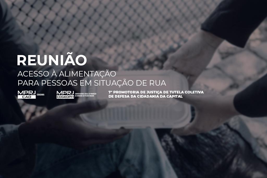 O Ministério Público do Estado do Rio de Janeiro (MPRJ), por meio do Centro de Apoio Operacional das Promotorias de Justiça de Cidadania (CAO Cidadania/MPRJ), da 7ª Promotoria de Justiça de Tutela Coletiva de Defesa da Cidadania da Capital e da Coordenadoria-Geral de Promoção da Dignidade da Pessoa Humana, participou, nesta quarta-feira (19/01), de uma reunião online para tratar de assuntos referentes ao acesso à alimentação para pessoas em situação de rua. Estiveram presentes, pelo MPRJ, a coordenadora-geral de Promoção da Dignidade da Pessoa Humana, Patrícia Leite Carvão; o promotor de Justiça Felipe Cuesta e as servidoras do CAO Cidadania/MPRJ, Meimei Alessandra de Oliveira e Lívia Barbosa Leite de Souza, que conduziram o encontro.