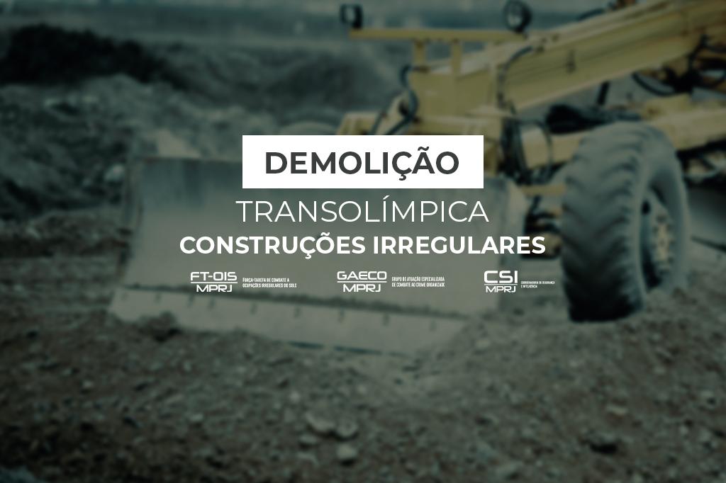 O Ministério Público do Estado do Rio de Janeiro (MPRJ), por meio da Força-Tarefa do Grupo de Atuação Especial no Combate ao Crime Organizado para enfrentamento à ocupação irregular do solo urbano (GAECO/FT-OIS), com auxílio da Coordenadoria de Segurança e Inteligência (CSI/MPRJ), participa, nesta quinta-feira (27/01), de operação para demolir construções irregulares em terrenos desapropriados pela prefeitura do Rio quando da construção da Transolímpica, via expressa na região Oeste da capital fluminense. A área invadida corresponde a uma zona de amortecimento, a 350 metros do Parque Estadual da Pedra Branca.