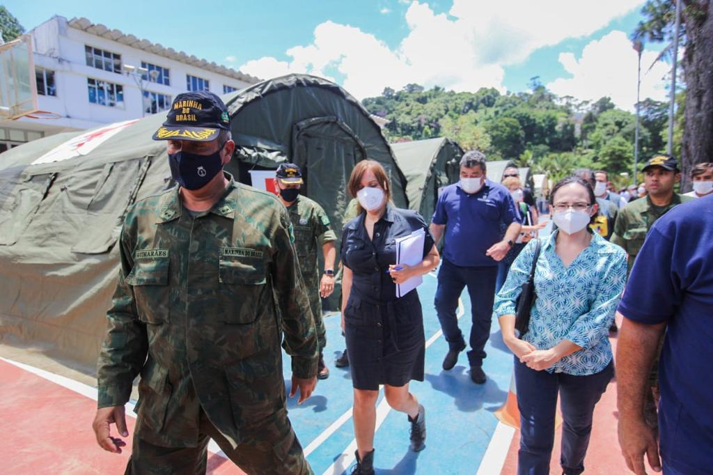O MPRJ realizou, também na manhã desta terça-feira (22/02), vistoria no Hospital de Campanha da Marinha, montado em Petrópolis e destinado ao atendimento ambulatorial de casos leves. Na ocasião, técnicos do GATE/MPRJ verificaram que a estrutura do local está adequada e apuraram o fluxo de encaminhamento dos pacientes para outras unidades Casos urgentes ou graves estão sendo encaminhados para UPAs em funcionamento, como a Cascatinha e a Itaipava. A vistoria foi realizada pela 2ª Promotoria de Justiça de Tutela Coletiva do Núcleo Petrópolis, em parceria com o MPF.