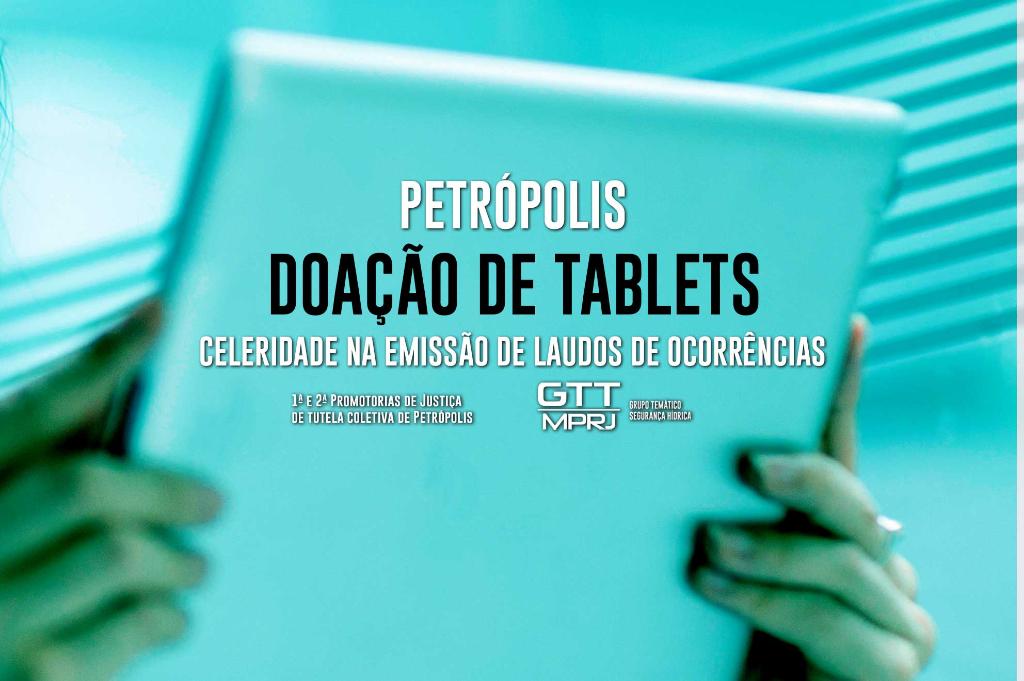 O Ministério Público do Estado do Rio de Janeiro (MPRJ), por meio das Promotorias de Justiça de Tutela Coletiva de Petrópolis e do Grupo Temático Temporário sobre Segurança Hídrica (GTT Segurança Hídrica/MPRJ), conseguiu, junto à Universidade do Estado do Rio de Janeiro (Uerj), a doação de dez tablets para a Defesa Civil de Petrópolis. Os dispositivos foram entregues na segunda-feira (04/04) e poderão proporcionar mais celeridade e eficiência ao trabalho de emissão de laudos nos registros de ocorrência. Também nesta segunda, o MPRJ participou de uma audiência pública com a Comissão do Senado, na Câmara de Petrópolis.