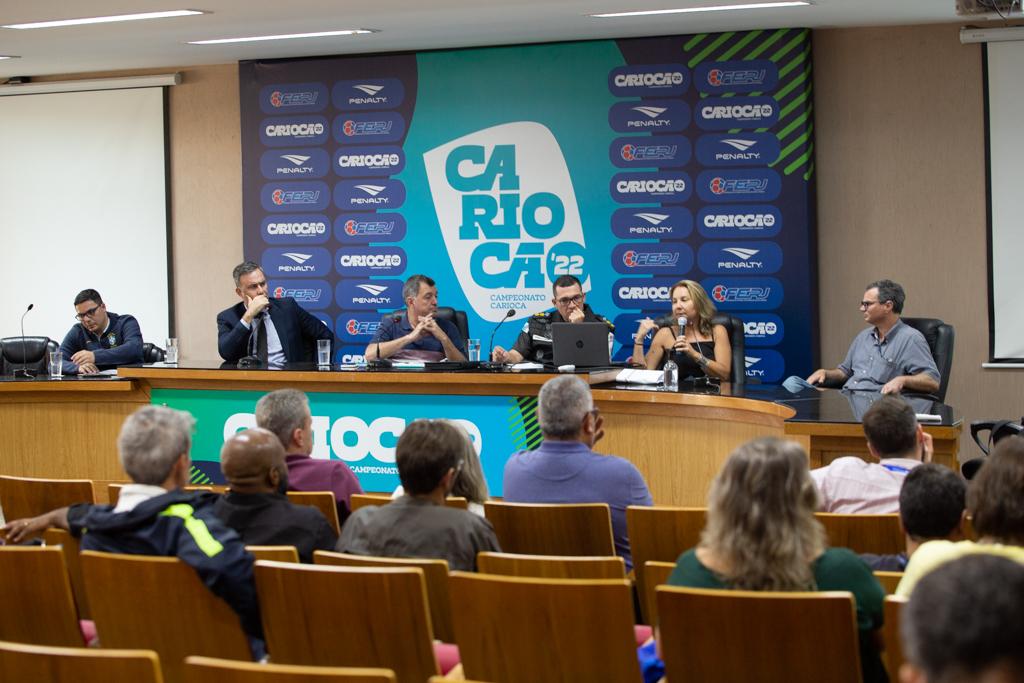 O Ministério Público do Estado do Rio de Janeiro (MPRJ), por meio do Grupo de Apoio Técnico Especializado (GATE/MPRJ), participou, na segunda-feira (18/04), de reunião sobre a ampliação do Programa de Classificação de Riscos em Estádios de Futebol, que determina os diferentes protocolos de segurança a serem cumpridos em cada partida, como fechamento de vias, varredura de ambulantes e logística de entrada de torcedores.