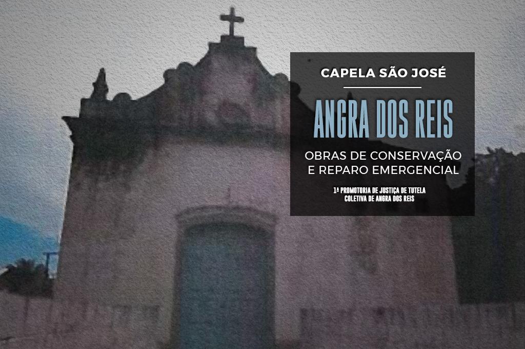O Ministério Público do Estado do Rio de Janeiro (MPRJ) ajuizou ação civil pública, com pedido de tutela de urgência antecipada, em face do Estado do Rio de Janeiro e da Mitra Diocese de Itaguaí, para que se providencie a conservação e reparo emergencial do interior e do exterior da Capela São José, em Angra dos Reis. Na ACP, a 1ª Promotoria de Justiça de Tutela Coletiva de Angra dos Reis requer ao Juízo que determine ações de intervenção e restauração ainda no curso do processo, dentro do prazo máximo de 90 dias.