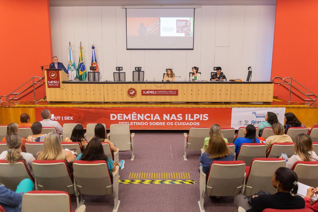 O Ministério Público do Estado do Rio de Janeiro (MPRJ) realizou, na sexta-feira (14/10) o seminário “Demência nas ILPIs – Refletindo sobre cuidados”. Promovido pelo Centro de Apoio Operacional das Promotorias de Justiça de Proteção ao Idoso (CAO Idoso/MPRJ) e pelo Instituto de Educação Roberto Bernardes Barroso (IERBB/MPRJ), em parceria com a Universidade Aberta da Terceira Idade – UNATI/ UERJ e a Sociedade Brasileira de Geriatria e Gerontologia (SBGG/RJ), o encontro marcou a 15ª edição do seminário e reuniu cerca de 300 pessoas no auditório da Instituição.