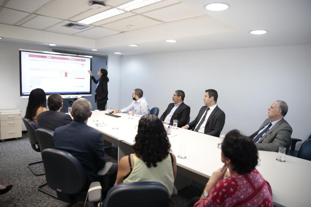 Pelo MPRJ, participaram da apresentação o secretário-geral de Planejamento Institucional, Marcus Leal, o assessor da Secretaria-Geral de Planejamento Institucional, Sidney Rosa, o diretor de Gestão do Conhecimento, André Herdy e a gerente da GADG, Cristiane Justen, além de integrantes da equipe da Diretoria de Gestão do Conhecimento.