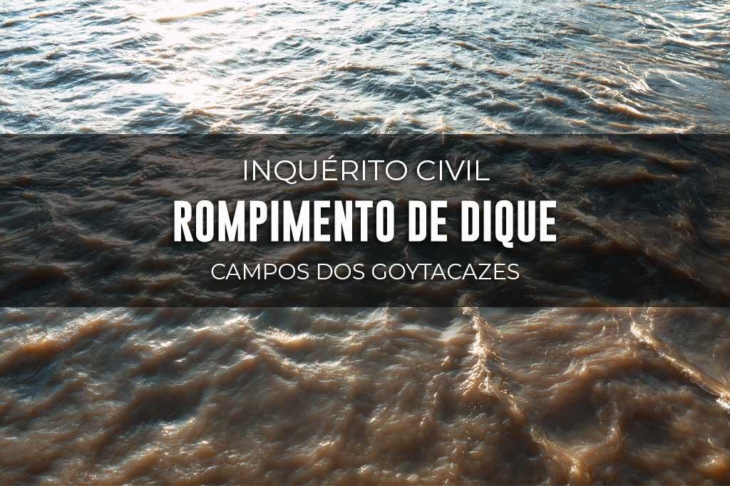 O Ministério Público do Estado do Rio de Janeiro (MPRJ), por meio da 2ª Promotoria de Justiça de Tutela Coletiva do Núcleo Campos dos Goytacazes, instaurou inquérito civil para apurar o deslizamento de terra e o rompimento do dique situado na Avenida 15 de Novembro, em Campos dos Goytacazes.