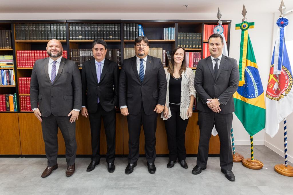 O procurador-geral de Justiça, Luciano Mattos, recebeu, nesta quarta-feira (05/04), a visita do Secretário Nacional do Consumidor, Wadih Damous, e do presidente da Comissão de Direito do Consumidor da OAB-RJ, Tarciso Amorim. A coordenadora do CAO Consumidor/MPRJ, Christiane Cavassa, e o assessor da Secretaria-Geral de Planejamento Institucional, Sidney Rosa, apresentaram ao secretário Nacional duas ferramentas desenvolvidas pelo MPRJ para facilitar a vida do consumidor e aprimorar a atuação do MPRJ: a plataforma Consumidor Vencedor e o projeto Lyra.