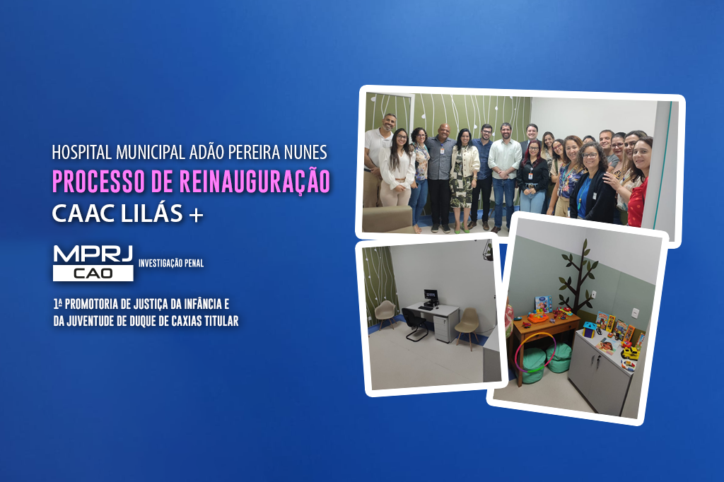 A subcoordenadora do Centro de Apoio Operacional das Promotorias de Justiça de Investigação Penal (CAO Investigação Penal/MPRJ), promotora de Justiça Adriana Lucas Medeiros, e a titular da 1ª Promotoria de Justiça da Infância e da Juventude de Duque de Caxias, promotora de Justiça Elayne Christina da Silva Rodrigues, visitaram, na quinta-feira (04/05), o Centro de Acolhimento ao Adolescente, à Criança e à Mulher Vítima de Violência (CAAC), no Hospital Municipal Adão Pereira Nunes, em Duque de Caxias. O espaço passa por um processo de reinauguração, após ter seu funcionamento interrompido pela pandemia de Covid-19. Agora, Ministério Público, Polícia Civil, Secretaria Municipal de Duque de Caxias, e a própria direção do Hospital unem esforços para reinaugurar o espaço.