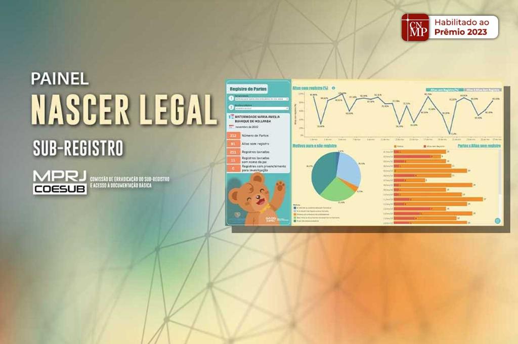 Criado para combater o sub-registro de recém-nascidos no estado, o projeto Nascer Legal conta com uma ferramenta digital desenvolvida pela equipe da Gerência de Análises, Diagnósticos e Geoprocessamento (GADG/MPRJ), para monitorar os registros de nascimento e identificação civil nas dez maternidades públicas que aderiram à proposta até o presente momento. Trata-se de formulários virtuais que são preenchidos pelas unidades de saúde (maternidade ) e pelo cartório, cujos dados coletados são retratados através do Painel Nascer Legal, uma plataforma de análise visual que compila, diariamente, informações sobre os números de partos, altas sem registro, os motivos da ausência de registro na unidade interligada situada na maternidade, registros lavrados e registros lavrados sem o nome do pai, fornecendo valiosas informações para que o Ministério Público do Estado do Rio de Janeiro (MPRJ) exerça o seu papel de fiscalização das políticas adotadas pelo Poder Público para erradicar o sub-registro no estado.