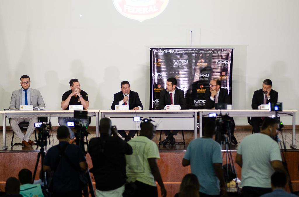 Em entrevista coletiva realizada na sede da PF, na Praça Mauá, o promotor de Justiça Fabio Corrêa, coordenador do Gaeco/MPRJ; os promotores Eduardo Morais Martins e Paulo Rabha de Mattos, integrantes da Força-Tarefa, o superintendente da Polícia Federal no Rio de Janeiro, Leandro Almada, e os delegados da PF Jaime Cândido e Guilhermo Catramby falaram sobre as investigações.