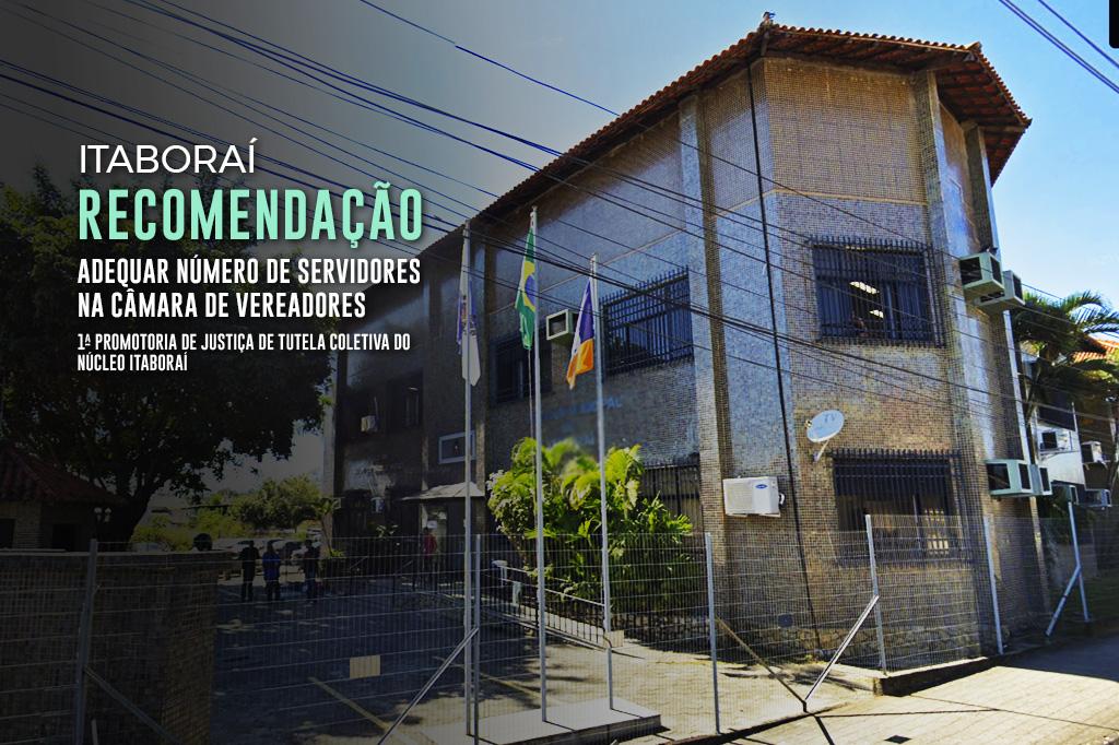 O Ministério Público do Estado do Rio de Janeiro (MPRJ), por meio da 1ª Promotoria de Justiça de Tutela Coletiva do Núcleo Itaboraí, expediu Recomendação para que a Câmara de Vereadores de Itaboraí, representada pelo presidente Elber Correa, promova uma série de medidas administrativas no que diz respeito à desproporcionalidade entre a quantidade de servidores comissionados e de servidores efetivos. Ressalta o MPRJ que as investigações tiveram início com Inquérito Civil instaurado a partir de denúncia anônima, com o objetivo de apurar o excessivo número de funcionários comissionados em detrimento dos poucos servidores públicos concursados.