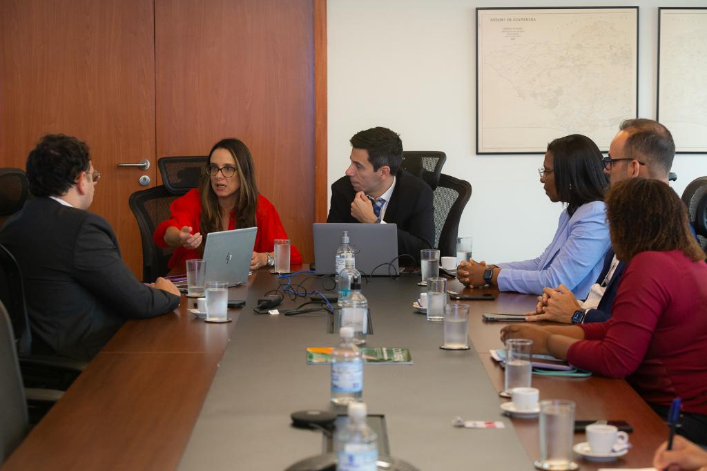 Participaram da reunião a coordenadora da FT-DESINST, promotora de Justiça Carolina Maria Gurgel Senra; a secretária de Desenvolvimento Social e Direitos Humanos do Estado, Rosangela Gomes; a procuradora do Estado Cristina Francesconi; e o assistente da FT- DESINST, promotor de Justiça Bruno Rinaldi Botelho.