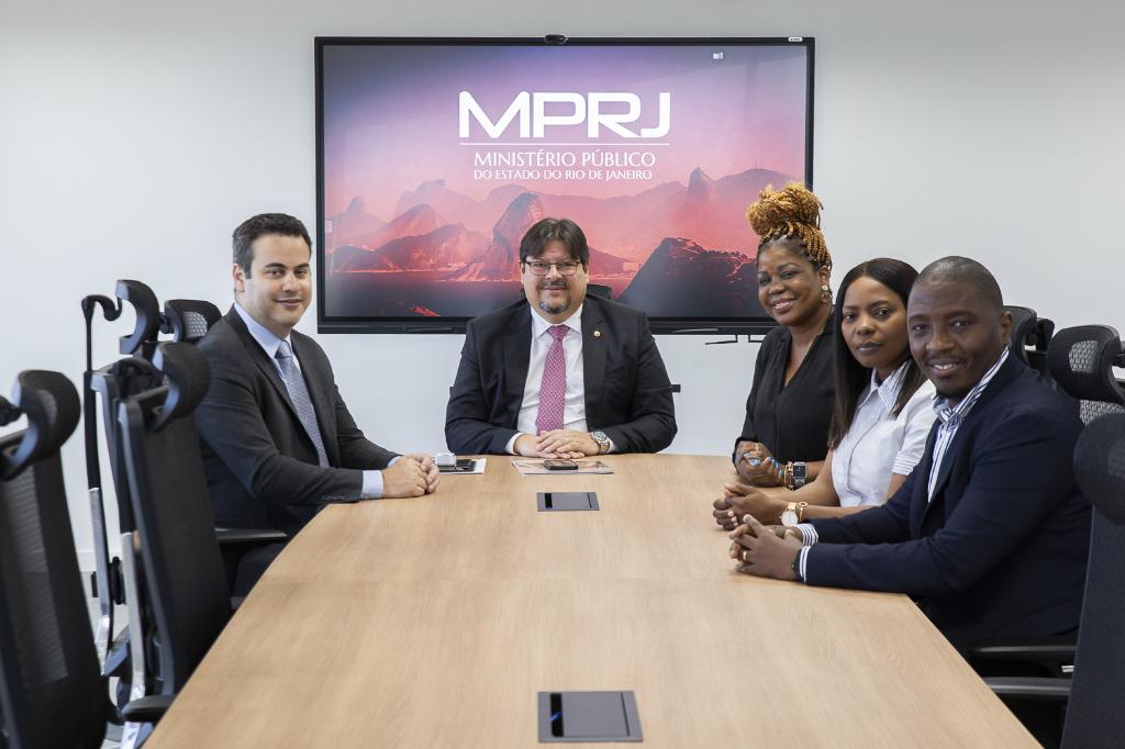 O procurador-geral de Justiça, Luciano Mattos, recebeu em seu gabinete, na tarde desta terça-feira (07/11), representantes do Ministério Público de Moçambique, que vieram participar da Conferência Internacional de Cooperação no Combate aos Crimes Cibernéticos, realizada na segunda-feira (06/11), na sede do Ministério Público do Estado do Rio de Janeiro (MPRJ). Até sexta-feira, os promotores de Justiça moçambicanos Cláudia Elizabeth Miguel, Mauro Manuel Mucambe e Ângela Josefa Mass vão cumprir uma agenda de visitação institucional para conhecer alguns setores do Parquet fluminense.