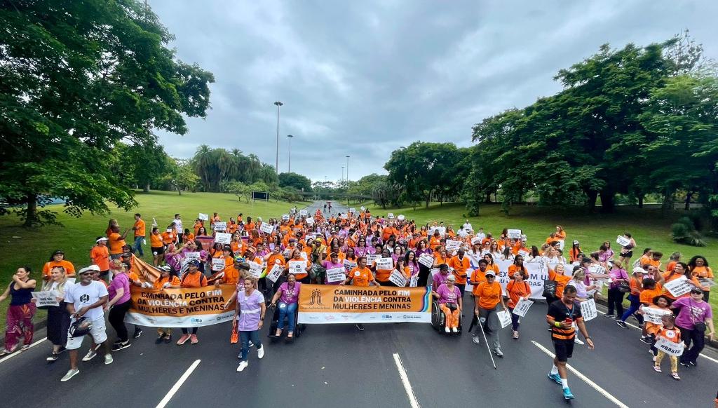 A ação, que aconteceu em diversos estados do país e também no exterior, marca o encerramento dos 21 dias de ativismo da Organização das Nações Unidas (ONU) pelo fim da violência contra as mulheres. Dados do Dossiê Mulher 2023, produzidos pelo Instituto de Segurança Pública (ISP), revelam que em 2022, no estado do Rio de Janeiro, 43.594 mulheres foram vítimas de violência psicológica, ou seja: a cada hora, 14 mulheres sofrem algum tipo de violência no estado.