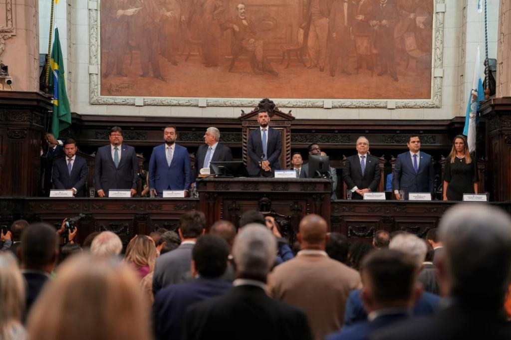 O procurador-geral de Justiça, Luciano Mattos, participou, nesta terça-feira (06/02), da abertura do ano legislativo na Assembleia Legislativa do Estado do Rio de Janeiro (Alerj). A solenidade foi presidida pelo presidente da Alerj, Rodrigo Bacellar. Compuseram a mesa de abertura o governador Cláudio Castro, o presidente do Tribunal de Justiça do Estado do Rio de Janeiro (TJ-RJ), desembargador Ricardo Rodrigues Cardozo, a defensora-pública geral do Estado do Rio, Patrícia Cardoso, o presidente do Tribunal de Contas do Estado (TCE-RJ), Rodrigo Melo do Nascimento, e o secretário de Estado da Casa Civil, Nicola Miccione.