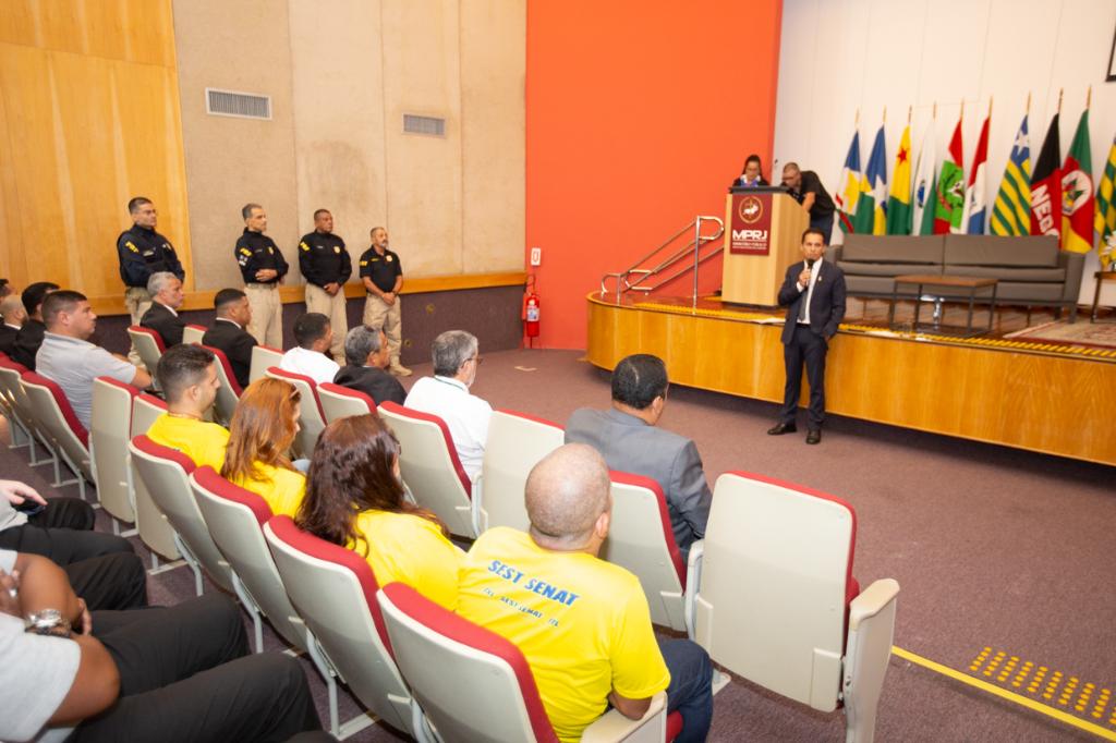 No início da palestra, o policial rodoviário federal, João Almeida, que está há 18 anos na corporação, contou relatos sobre as rodovias no estado do Rio de Janeiro e garantiu que as estradas do estado são as mais perigosas do país em relação a acidentes. Almeida também apresentou o programa "Visão Zero", que foi criado na Suécia e tem o objetivo de não aceitar nenhuma morte no trânsito. Além disso, apresentou quatro fatores importantes que precisam estar alinhados para poupar vidas e diminuir os altos índices de mortalidade no trânsito. Esses fatores são: infraestrutura de qualidade nas estradas, veículos com tecnologia avançada de proteção, condições ambientais e pessoas, ou seja, cada indivíduo precisa fazer sua parte e respeitar o Código de Trânsito. Os agentes da PRF Marcos Paulo, Gilmar Grillo, Roberto Luciano e João Almeida receberam um certificado do MPRJ devido à colaboração para a instituição.