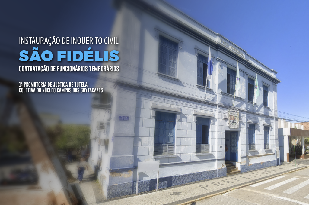 O Ministério Público do Estado do Rio de Janeiro (MPRJ), por meio da 1ª Promotoria de Justiça de Tutela Coletiva do Núcleo Campos dos Goytacazes, instaurou, na terça-feira (02/07), um inquérito civil para apurar notícia segundo a qual o Município de São Fidélis estaria efetuando a contratação continuada de servidores públicos temporários para ocupação de cargos, em detrimento dos candidatos aprovados por concurso público.