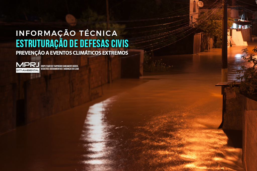 O Ministério Público do Estado do Rio de Janeiro (MPRJ), por meio do Grupo Temático Temporário para atuação em Saneamento Básico, Desastres Socioambientais e Mudanças do Clima (GTT-Ambiental/MPRJ), produziu um documento para orientar os 92 municípios do estado no que diz respeito à composição de suas estruturas de Defesa Civil e respectivas capacidades de resposta, em caso de eventos climáticos extremos. Segundo a Informação Técnica, os municípios do Rio de Janeiro, Angra dos Reis, Petrópolis, São Gonçalo e Teresópolis devem realizar os maiores investimentos em suas estruturas, pois possuem risco muito alto de sofrerem consequências graves em caso de deslizamentos de encostas, enxurradas e inundações ocasionadas pelas chuvas.
