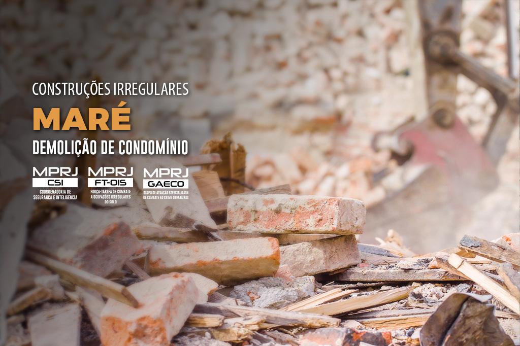 O Ministério Público do Estado do Rio de Janeiro (MPRJ), por meio da Força-Tarefa de Enfrentamento à Ocupação Irregular do Solo Urbano, do Grupo de Atuação Especializada de Combate ao Crime Organizado (GAECO/FT-OIS), em atuação conjunta com a Secretaria Municipal de Ordem Pública (SEOP), realizam nesta terça-feira (13/08), a demolição de um condomínio com mais de 40 construções irregulares na comunidade Parque União, na Maré. A operação também conta com o apoio de agentes da Coordenadoria de Segurança e Inteligência (CSI/MPRJ) e das Polícias Civil e Militar.