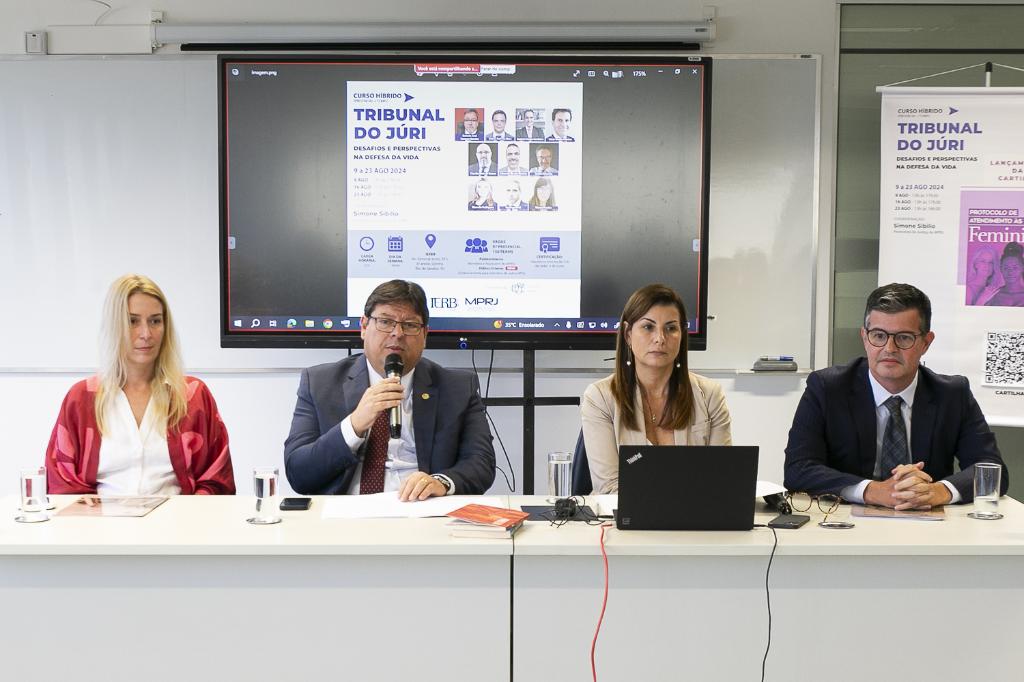 Além do PGJ e de Simone Sibilio, compuseram a mesa de abertura do último dia de curso a subcoordenadora do Centro de Apoio Operacional das Promotorias de Justiça Criminais (CAO Criminal/MPRJ), Anna Gabriella Taunay, e o diretor do IERBB/MPRJ, Leandro Navega. A mediação do último dia do encontro coube à promotora de Justiça Daniela de Oliveira Lima Peroba.
