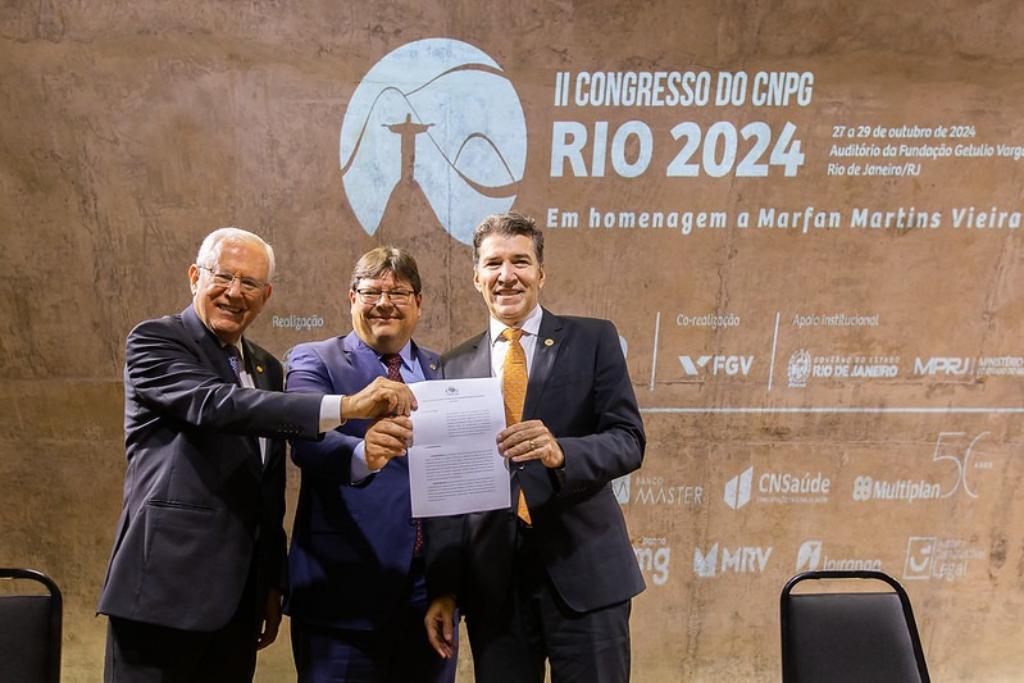 Encerrando o II Congresso do CNPG, Luciano Mattos e Jarbas Soares Júnior assinaram a “Carta do Rio de Janeiro”, com propostas de atuação resolutiva, eficiente e integrada entre todos os MPs do país, dividida em quatro enunciados: Sistema de Justiça digital: inteligência artificial, governança digital, proteção de dados e enfrentamento da criminalidade por meios informáticos; Estado de Direito Ecologicamente Sustentável, mudanças climáticas e gestão adequada de desastres socioambientais e litígios estruturais; Promoção integral dos direitos das vítimas; e Atuação perante as Cortes Superiores e fortalecimento da cultura de precedentes. A Carta foi lida aos presentes pela subprocuradora-geral de Justiça de Planejamento e Políticas Institucionais do MPRJ, Ediléa Cesario, e pela subprocuradora-geral de Justiça de Assuntos Cíveis e Institucionais do MPRJ, Ana Cristina Lesqueves.
