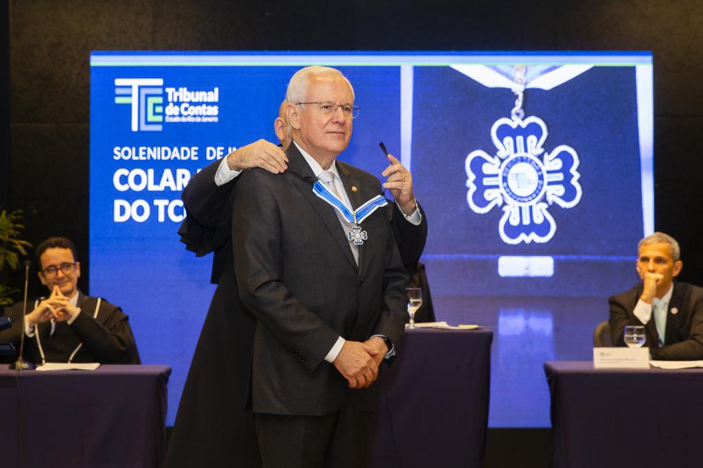 Estavam presentes autoridades dos três poderes, bem como servidores públicos e amigos. O Colar do Mérito do Tribunal de Contas do Estado do Rio de Janeiro foi criado pela Resolução nº 403, de 1º de junho de 2022, e é constituído por uma cruz, no modelo da tradicional da Cruz de Aviz, com quatro braços iguais, revestida de esmalte azul.