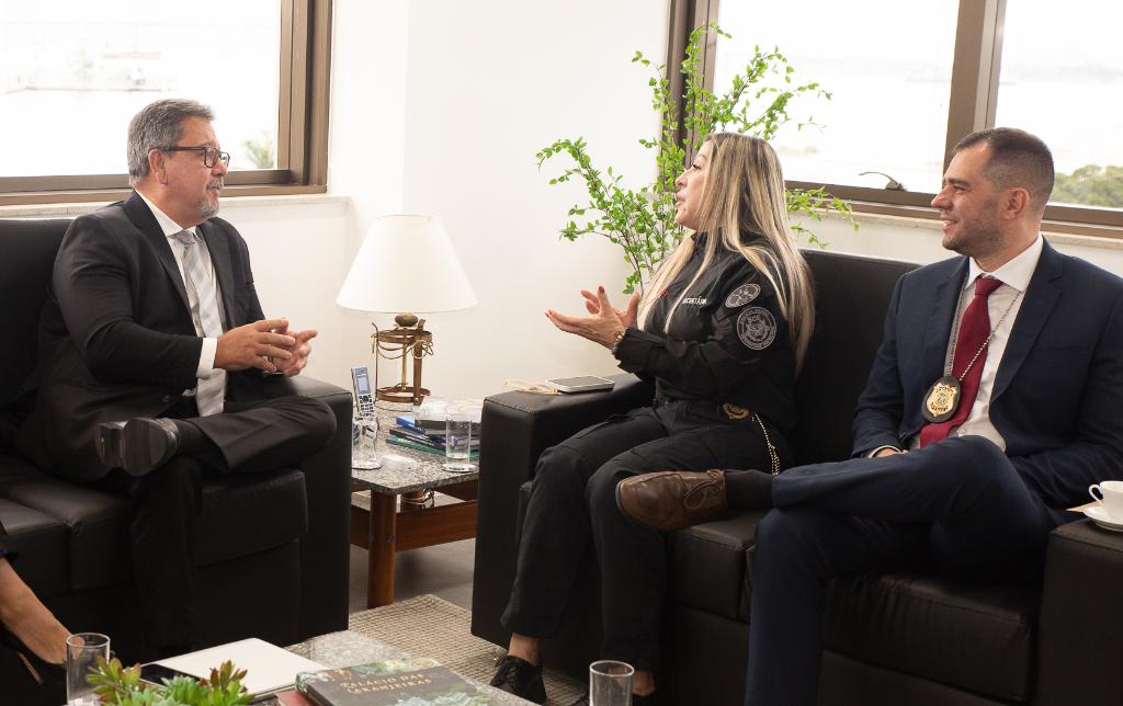 O procurador-geral de Justiça, Antonio José Campos Moreira, recebeu, nesta sexta-feira (31/01), a administração da Secretaria de Estado de Administração Penitenciária (Seap). Durante o encontro, o PGJ ressaltou a necessidade de diálogo entre as instituições. “Recebemos a secretária Maria Rosa Lo Duca Nebel e o subsecretário Leonardo Franceschin, para alinharmos algumas providências e medidas conjuntas na área de execução penal e inteligência”, destacou o PGJ, que tomou posse no último dia 17 de janeiro.