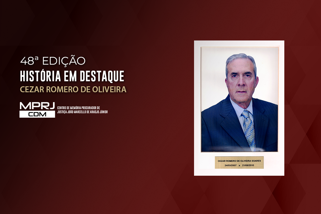 O Centro de Memória João Marcello de Araújo Júnior do Ministério Público do Estado do Rio de janeiro (CDM/MPRJ) apresenta a 48ª edição do projeto História em Destaque. Neste mês, será retratada a trajetória do Procurador de Justiça Cezar Romero de Oliveira Soares, por meio do destaque de sua fotografia oficial no cargo de Corregedor-Geral do MPRJ.