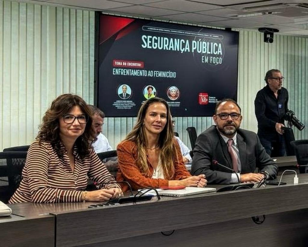 “Enfrentamento ao Feminicídio” foi o tema da 24ª edição do projeto “Segurança Pública em Foco”, promovido pelo Conselho Nacional do Ministério Público (CNMP) por intermédio da Comissão do Sistema Prisional - Controle Externo da Atividade Policial e Segurança Pública (CSP), realizado nesta quarta-feira (09/04) em Brasília. O Ministério Público do Estado do Rio de Janeiro (MPRJ) esteve representado pelos promotores de Justiça Isabela Jourdan e Eyleen Marenco, respectivamente coordenadora e subcoordenadora do Centro de Apoio Operacional das Promotorias de Justiça de Combate à Violência Doméstica e Familiar Contra a Mulher (CAO Violência Doméstica e Familiar/MPRJ), além de Fabio Corrêa, coordenador do Grupo de Atuação Especializada em Segurança Pública (GAESP/MPRJ).