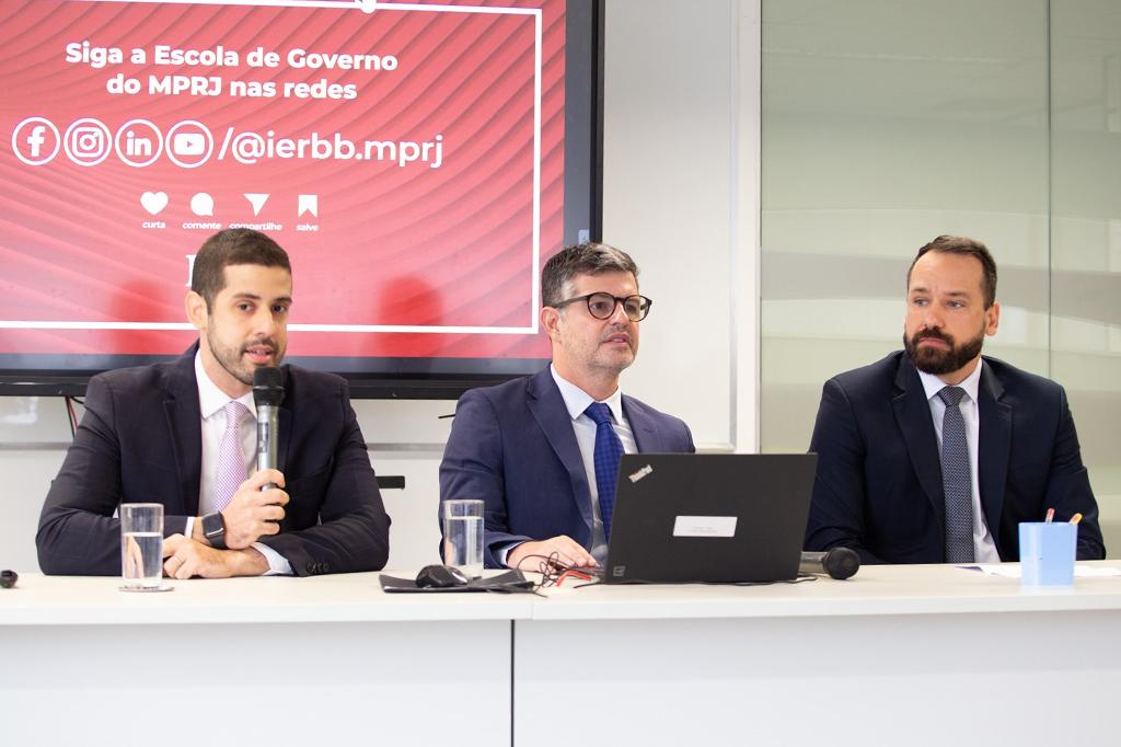 A mesa de abertura contou com as presenças do diretor do IERBB/MPRJ, Leandro Navega, do assistente do Grupo de Atuação Especializada de Combate ao Crime Organizado (GAECO/MPRJ), Mario Lavareda, e do integrante do Grupo de Atuação Especializada em Segurança Pública (GAESP/MPRJ), Uriel Gonzalez. O curso é coordenado pelos promotores de Justiça Fabio Corrêa, coordenador do GAESP/MPRJ e Mario Lavareda.