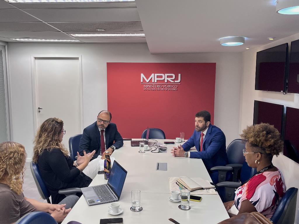 Foram discutidos também o aprimoramento do acesso da população local ao canal do plantão do Ministério Público, bem como estratégias para qualificar o uso de dados produzidos por organizações da sociedade civil como ferramenta de aproximação e diálogo. Participaram da reunião o coordenador e os subcoordenadores do GAESP/MPRJ, promotores de Justiça Fabio Corrêa, Rafael Namorato e Thiago Bucker. Pela Redes da Maré, estiveram presentes a coordenadora do Eixo Direito à Segurança Pública e Acesso à Justiça, Tainá Alvarenga; a coordenadora da Área de Incidência Política, Lidiane Malanquini; e o pesquisador e coordenador do Projeto Maré por Justiça, Maykon Sardini.