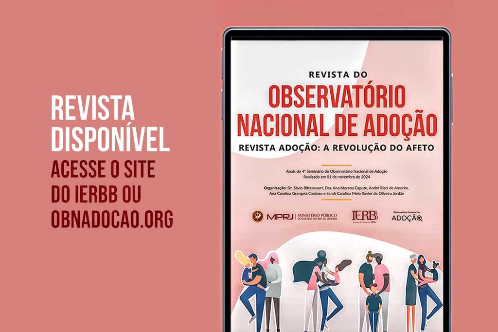 Em celebração ao Dia Nacional da Adoção (25/05), o Observatório Nacional de Adoção (OBNAD), vinculado ao Instituto de Educação Roberto Bernardes Barroso do Ministério Público do Estado do Rio de Janeiro (IERBB/MPRJ), publicou a quarta edição de sua revista, contendo os anais do 4º Seminário OBNAD, realizado em 01 de novembro de 2024. A publicação é organizada pelo procurador de Justiça Sávio Bittencourt, criador e diretor do OBNAD, pela coordenadora do OBNAD, Ana Morena Capute, e por outros profissionais do IERBB/MPRJ.
