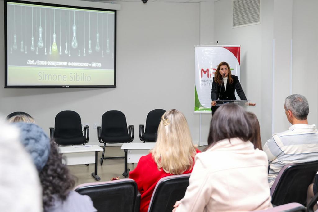 A promotora de Justiça Simone Sibilio, coordenadora do Centro de Apoio Operacional das Promotorias de Justiça Criminais (CAO Criminal/MPRJ) e do Grupo de Atuação Especializada em Tribunal do Júri (GAEJURI/MPRJ), participou, no dia 26 de junho, do Encontro Estadual de Tribunal do Júri 2025, promovido pelo Ministério Público do Estado de Santa Catarina (MPSC), na sede da instituição, em Florianópolis.