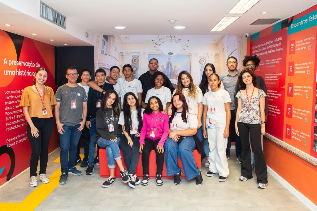 O Ministério Público do Estado do Rio de Janeiro recebeu, nesta terça-feira (23/09), um grupo de estudantes da rede pública, por meio do Centro de Memória Procurador de Justiça João Marcello de Araújo Júnior (CDM/MPRJ). A visita guiada contou com a presença dos estudantes do 9º ano do Ginásio Educacional Tecnológico Alexandre Farah, localizado em Ricardo de Albuquerque, na zona Norte do Rio, que visitaram as exposições Congressos e Encontros: em Construção da Cidadania e O MP e o Novo Estado: os 50 anos da fusão.