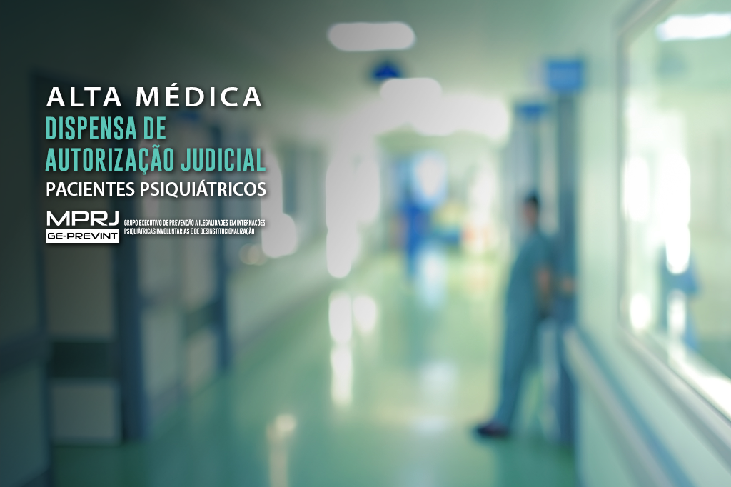 Como resultado do trabalho desenvolvido pelo Grupo Executivo de Prevenção a Ilegalidades em Internações Psiquiátricas Involuntárias e de Desinstitucionalização do Ministério Público do Estado do Rio de Janeiro (GE-PREVINT/MPRJ), a Corregedoria-Geral da Justiça expediu recomendação aos juízes com atribuição cível para que autorizações judiciais não sejam mais exigidas no momento da desinternação de pacientes psiquiátricos internados compulsoriamente, tendo em vista se tratar de ato médico, devendo ser comunicadas imediatamente ao Juízo competente.