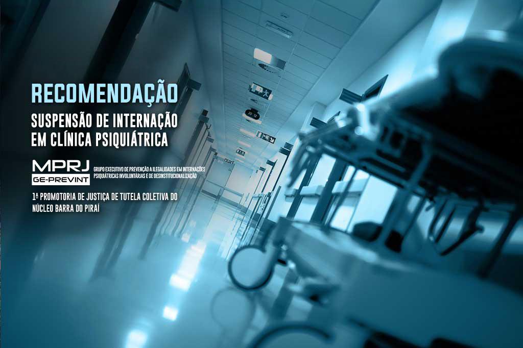 A recomendação foi expedida pela 1ª Promotoria de Justiça de Tutela Coletiva do Núcleo Barra do Piraí e pelo Grupo Executivo de Prevenção a Ilegalidades em Internações Psiquiátricas Involuntárias e de Desinstitucionalização (GE-PREVINT/MPRJ). Foram notificados os planos de saúde Unimed Centro Sul Fluminense Cooperativa de Trabalho Médico, Bradesco Saúde S/A, Sul América Serviços de Saúde S/A, Porto Seguro – Seguro Saúde S/A e LIV Saúde, tendo sido realizada reunião que contou com a presença de representantes dos Planos UNIMED, Bradesco e Liv Saúde, haja vista a urgência do caso.