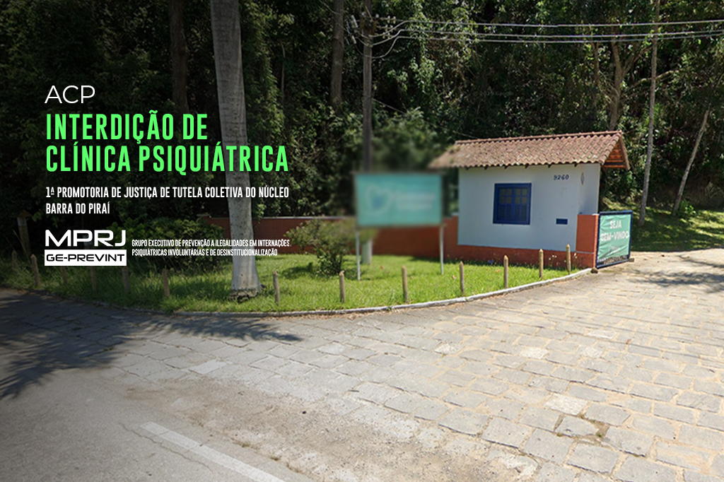 A 1ª Promotoria de Justiça de Tutela Coletiva do Núcleo Barra do Piraí, com o apoio do Grupo Executivo de Prevenção a Ilegalidades em Internações Psiquiátricas Involuntárias e de Desinstitucionalização (GE-PREVINT/MPRJ), ajuizou, na quarta-feira (21/10), ação civil pública com pedido de tutela de urgência contra a Clínica de Reabilitação Gemma Galgani, para que a clínica seja interditada e deixe de receber imediatamente novos pacientes em suas dependências. A unidade privada é especializada na assistência psicossocial e na saúde de pessoas com distúrbios psíquicos, deficiência intelectual e dependência química.