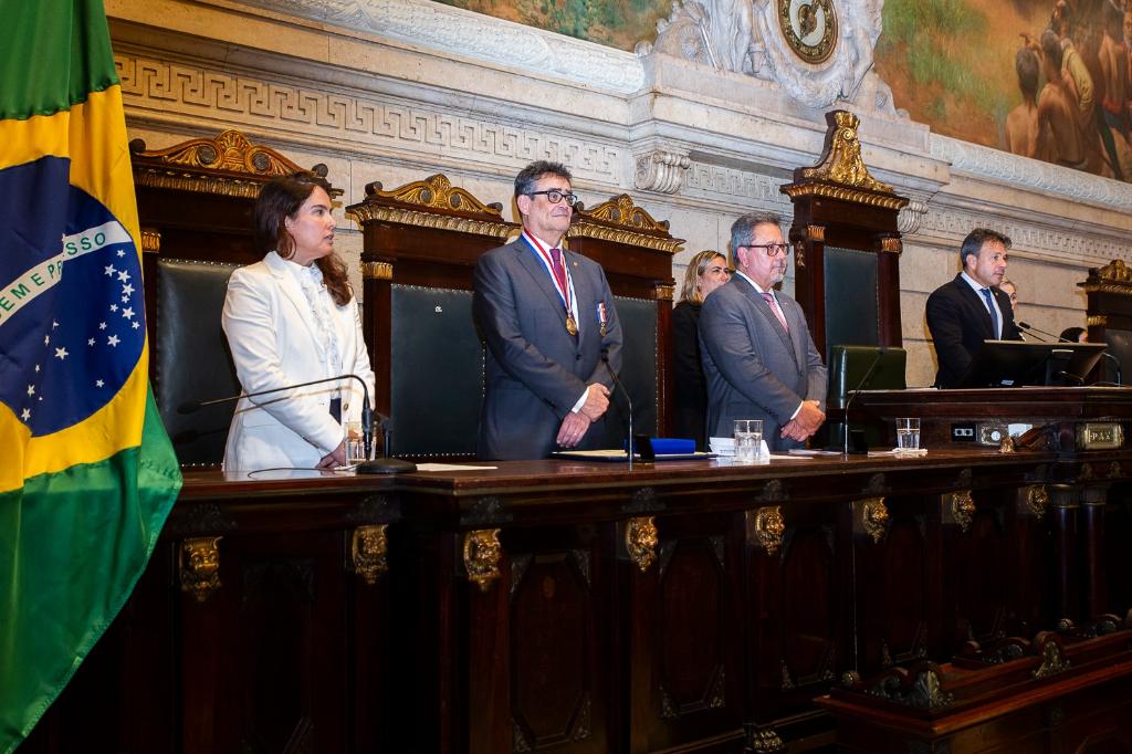 Onze membros do Ministério Público do Estado do Rio de Janeiro (MPRJ) foram agraciados, na noite desta terça-feira (02/12), com o Conjunto de Medalhas Pedro Ernesto, a mais alta honraria concedida pelo Legislativo carioca. A iniciativa é de autoria do presidente da Câmara Municipal, vereador Carlo Caiado. O procurador-geral de Justiça, Antonio José Campos Moreira; o consultor especial do MPRJ e procurador de Justiça Carlos Roberto de Castro Jatahy; e a corregedora-geral da Câmara, Bianca Lima, compuseram a mesa diretora da solenidade.