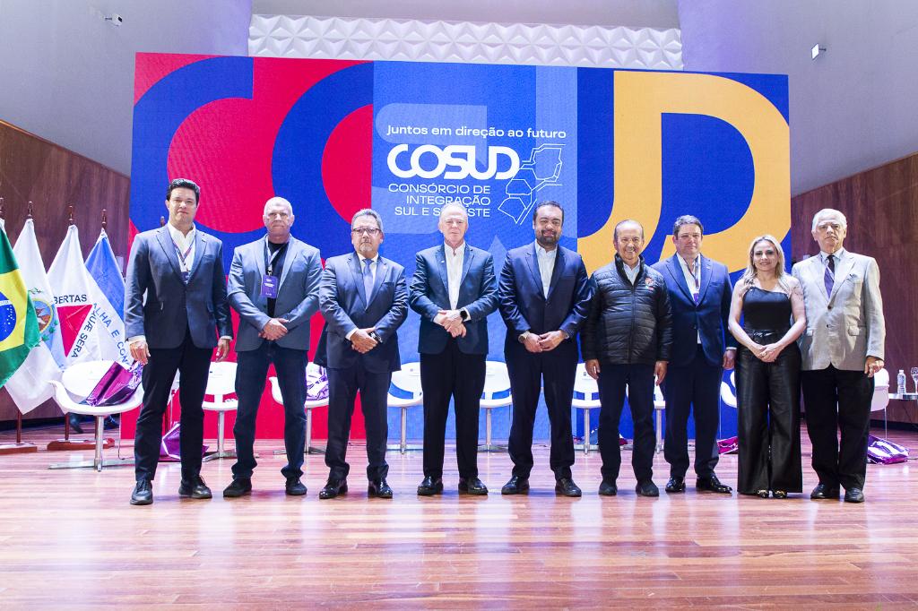 Criado em Belo Horizonte (MG), em 16 de março de 2019, o Consórcio de Integração Sul e Sudeste (COSUD) tem como objetivo consolidar uma agenda permanente de cooperação entre os governos das duas regiões, alinhada às demandas econômicas, sociais e ambientais. Com uma população de 119 milhões de habitantes — o equivalente a 70% do PIB nacional, segundo o IBGE —, os estados do Sul e Sudeste concentram temas prioritários como segurança pública, combate ao contrabando, sistema prisional, saúde, desburocratização, turismo, educação, desenvolvimento econômico, logística, transportes, inovação e tecnologia.