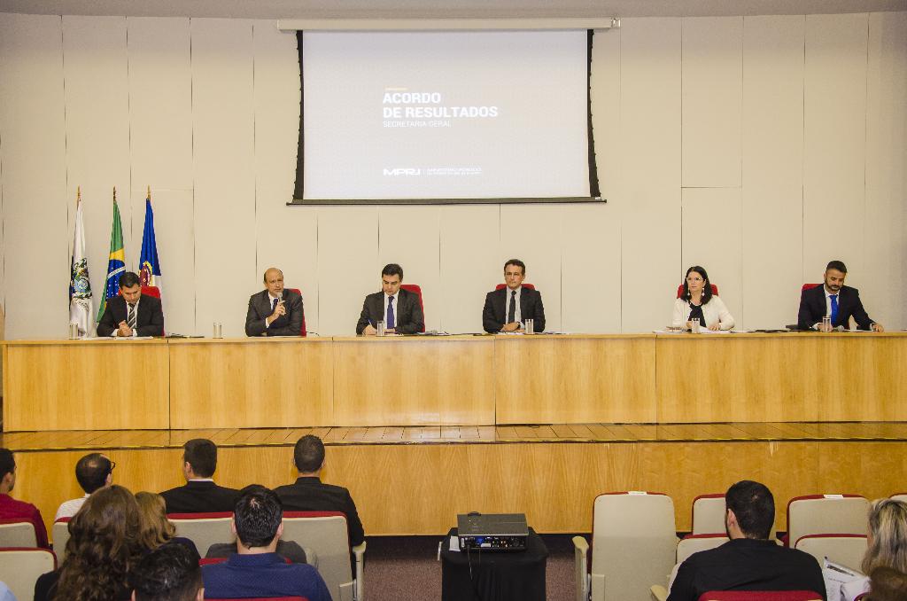 A Secretaria-Geral do Ministério Público do Estado do Rio de Janeiro (MPRJ) realizou, nesta segunda-feira (12/6), o evento "Implantação do Acordo de Resultados da Secretaria-Geral", firmado entre os gestores e equipes de diversos órgãos administrativos. O Acordo de Resultados consiste num importante instrumento de gestão, à medida que consolida em documento o compromisso para a execução de metas e projetos relacionados à atividade meio do MPRJ para o período de um ano.