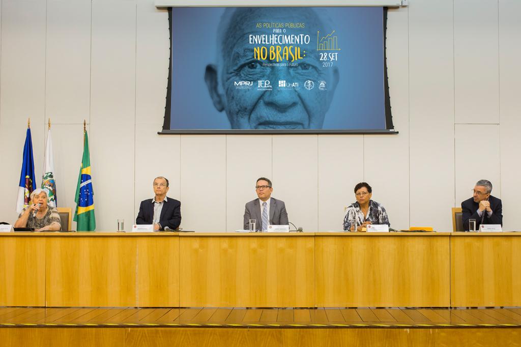 O Ministério Público do Estado do Rio de Janeiro (MPRJ), por meio do Centro de Apoio Operacional das Promotorias de Justiça de Proteção ao Idoso e à Pessoa com Deficiência (CAO Idoso/MPRJ) e do Instituto de Educação e Pesquisa (IEP/MPRJ), em parceria com a Universidade Aberta da Terceira Idade (UNATI/UERJ), realizou, nesta quinta-feira (28/09), o evento “As Políticas Públicas para o Envelhecimento no Brasil: Perspectivas para o Futuro”. O encontro lotou o auditório do MPRJ, com capacidade para mais de 300 pessoas, e foram disponibilizados mais 50 assentos no foyer para que inscritos pudessem assistir em um telão.