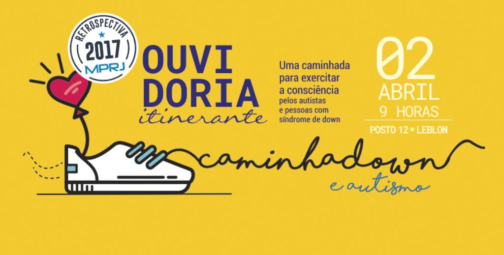 A Ouvidoria do Ministério Público do Estado do Rio de Janeiro (MPRJ) vai participar da CaminhaDown e Autismo 2017, neste domingo (02/04), com concentração no Posto 12 da Praia do Leblon, às 9h. O ato faz parte de uma série de ações em menção ao Dia Internacional da Síndrome de Down, comemorado dia 21 de março, e do Dia da Conscientização do Autismo, celebrado no dia da caminhada.