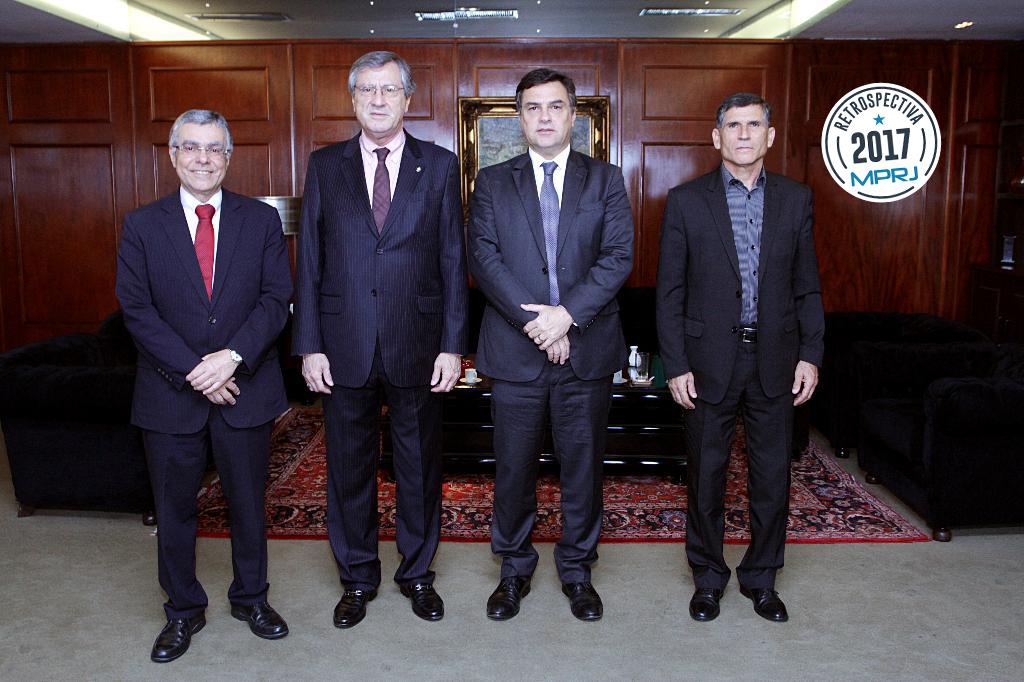 O procurador-geral de Justiça do Estado do Rio de Janeiro, Eduardo Gussem, participou, nesta quarta-feira (27/09), de reunião com o ministro da Justiça, Torquato Jardim; o presidente do Tribunal de Justiça do Estado do Rio de Janeiro (TJRJ), desembargador Milton Fernandes de Souza; o secretário nacional de Segurança Pública, general Carlos Alberto Santos Cruz; e a presidente do Tribunal Regional Eleitoral (TRE-RJ), desembargadora Jacqueline Montenegro. No encontro, foram discutidas soluções para a questão da segurança pública no Estado.