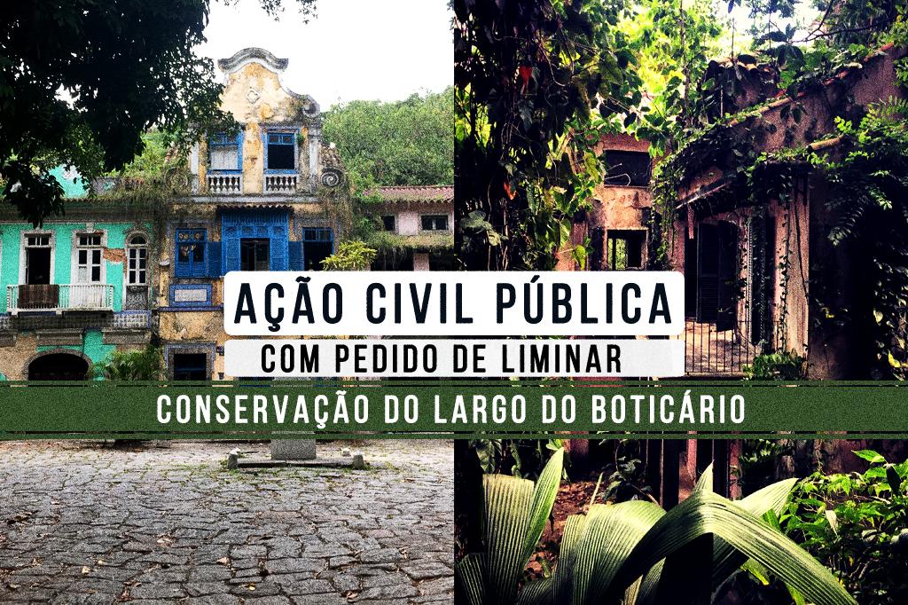 O Ministério Público do Estado do Rio de Janeiro (MPRJ), por meio da 3ª Promotoria de Justiça de Tutela Coletiva de Defesa do Meio Ambiente e do Patrimônio Cultural da Capital, ajuizou ação civil pública, com pedido de liminar, para determinar que o Estado do Rio de Janeiro e Sybil Bittencourt adotem medidas, cada qual na medida de sua possibilidade financeira, em caráter emergencial, para evitar eventual desabamento e conservar o patrimônio do Largo do Boticário, no Cosme Velho, na Zona Sul do Rio de Janeiro.