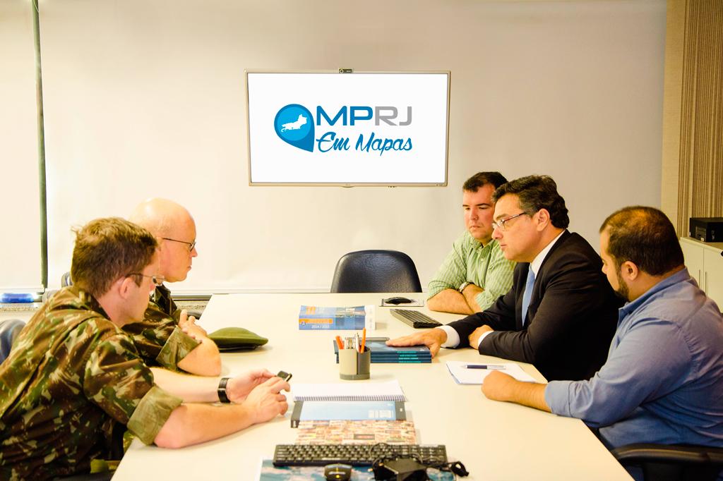 O Ministério Público do Estado do Rio de Janeiro apresentou, na tarde desta segunda-feira (25/06), a plataforma digital ‘MP em Mapas’ para o general de Brigada Edson Diehl Ripoli, comandante da Escola de Comando e Estado-Maior do Exército (ECEME). Disponível ao público em geral, a ferramenta desenvolvida pelo MPRJ permite aos cidadãos o acesso a informações de diversas áreas referentes ao estado e aos municípios fluminenses, e subsidia o trabalho de promotores e procuradores de Justiça. A partir do cruzamento e da integração de dados, alguns gerados pelo próprio MPRJ, outros cedidos por instituições parceiras, é possível também elaborar sugestões de políticas públicas mais eficientes.